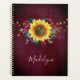 This burgundy planner features watercolor sunflowers and burgundy roses with foliage and string lights. Personalise the cover with your own text.