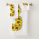 Decorate your bathroom with these eye-catching sunflower "love" towels. This design prominently incorporates vivid amber elements. Express yourself by experimenting with different background colours.