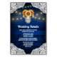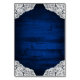 Sunflower Mason Jar Blue Wood Wedding Insert Cards - feature a royal navy or blue barn background trimmed with lace and decorated with warm coloured string twinkle lights. The design also features a bouquet of sunflowers inside a mason jar that you can customise the initials to those of your choice. The back also features the same country rustic background to match the front. Include these detail cards to inform your guests of your reception location, the reception timeline and hotel information to make planning easier.