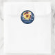 The sticker is made on wonderful paper and had no problem sticking to the bag that I purchased to put it on. I wanted to find a design that would be cute for the bride and groom and this one fit the bill as it has cute "bees" buzzing around and the wedding was taking place in a town called "Bee Cave". The packaging was great and protected the stickers. The website is easy to navigate and there are so many color choices. I had no problem finding a color that the bride was using on everything else selected. The design was adorable and there were many to choose from. You can make the figure as larger or smaller and you can place the photo and writting whereever you want to in the sticker. The printing is fabulous..better than expected.