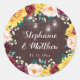 Sunflower Mason Jars Wood Burgundy Wedding Classic Round Sticker