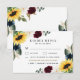 Design features elegant watercolor sunflowers, burgundy red and navy blue roses, white magnolia and various types of greenery. The design's back features matching elements to match the front.