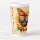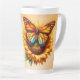This beautifully designed latte mug features a vibrant illustration of a monarch butterfly perched on a blooming sunflower. The intricate details of the butterfly's wings and the sunflower's petals create a stunning visual that is both eye-catching and elegant. The background has a soft, warm gradient that complements the natural beauty of the artwork. The mug can be personalised with any name, making it a perfect gift for nature lovers and coffee enthusiasts alike.