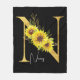 Sunflower Monogram Letter N Floral Letter N Gift Fleece Blanket
