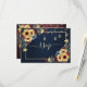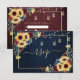 Create the perfect wedding invitation RSVP with this warm, trendy sunflower, navy blue, burgundy watercolor floral design, featuring navy blue and burgundy wood background, sweet string lights and hand lettered script typography. There are 2 versions on this RSVP this one has a modern meal options included on the back. Plain white envelopes included (matching return address labels available in collection). Contact designer for matching products. Copyright Elegant Invites, all rights reserved.