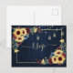 Sunflower Navy Blue Burgundy Wood Floral RSVP Invitation Postcard
