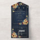 Sunflower Navy Blue Burgundy Wood Floral Wedding All In One Invitation