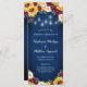 Sunflower Navy Blue Jar Lights Burgundy Wedding Programme