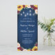 These wedding programs feature sunflowers and burgundy blush flowers on a navy blue wood grain background with mason jar lights. Personalise them with you text. These wedding programs are part of a collection which includes a range of matching wedding stationery that you can personalise for your wedding. Please visit our store to see the full range.