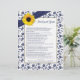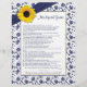 You can personalise the name on this yellow sunflower, navy blue and white floral and ribbon personalised bridal shower newlywed game. You can change the text using the personalise options. The colours on this sunflower flower bridal shower game are yellow, navy blue and white... perfect for a spring, summer, or fall / autumn wedding shower.