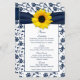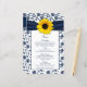 Sunflower Navy Blue White Damask Wedding Menu Card
