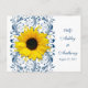 Sunflower Navy Blue White Floral Wedding Rsvp Invitation Postcard