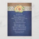 Rustic burlap lace and sunflowers navy wedding details - information - insert card