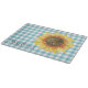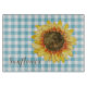 Charming country/farmhouse style design features blue gingham plaid background with large watercolor sunflower bloom