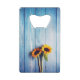 A lovely photograph of a pair of brilliant yellow gold sunflowers on a rich aged blue wooden wall.