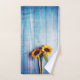 Transform your bathroom into a serene retreat with this beautiful bath towel set featuring a pair of golden yellow sunflowers set against a richly aged blue wooden background. The vibrant floral design brings a cheerful and refreshing touch, while the rustic woodgrain texture adds a cosy, farmhouse charm. This coordinated set includes a bath towel, hand towel, and washcloth, all designed to combine functionality with timeless beauty. Perfect for adding a pop of colour to your daily routine, this sunflower-themed set is ideal for anyone who loves nature-inspired decor with a hint of rustic elegance.