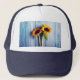 Sunflower on Blue Wood Wall Trucker Hat