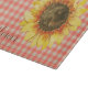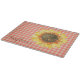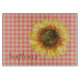 Charming country/farmhouse style cutting board design features gingham check background with large watercolor sunflower bloom