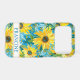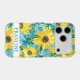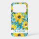 Customise this colourful modern sunflowers on teal painting iPhone 17 pro case with your your name in a trendy modern CAP font in teal on white. It's so beautiful and happy!