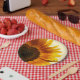 An autumn sunflower with streaks of red in the yellow petals. Sunflowers symbolise longevity, loyalty and adoration. These paper plates are fully customisable.