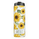 Personalise this beautifully styled Sunflower Patterned thermal tumbler with your own name, or the name of someone you'd like to gift it so, such as a favourite teacher.