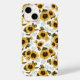 Rustic pattern of watercolor illustration of yellow sunflowers with baby's breath.