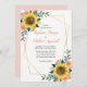 Sunflower Peach Roses Modern Geometric Wedding Invitation