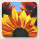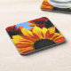 This set of cork coasters will bring brightness and cheer to your life! Three brilliantly coloured sunflowers are illuminated by the sunlight streaming through the petals. The flowers display a gorgeous palette of gold, yellow, orange, red and brown. The blue sky completes this abstract pattern of colour and form.