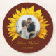 Elegant wedding save the date round paper coaster featuring a yellow gold sunflower with your photo inside, the bride and groom's names, date, and place over a burgundy background. ++++++++++ Suitable for trendy modern rustic country summer or autumn fall outdoor backyard, garden, barn or farmhouse weddings. ++++++ Please note that the colours are changeable. If you need to customise it in a specific colour of text and/or background, please contact the designer through the MESSAGE button below.