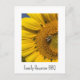Family Reunion summer BBQ invitation postcard, with a yellow sunflower photo with a busy bee at work. With black customisable lettering, you can add your own text. You can also replace the photo with your own. Great for planning your country floral party or barbecue celebration.