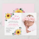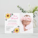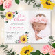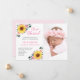 This birth announcement features a pretty sunflower and pink floral watercolor design. Personalize it with your photo and text.