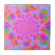 Sunflower floral vintage boho hippie hot pink purple orange green colourful kaleidoscope ceramic tile. Beautiful trendy, retro, chic, sixties elegant spring flowers design. Look for matching products in my store collection. Image copyright Marg Seregelyi Photography.