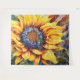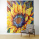 Vibrant watercolor painting of a close up of a sunflower in bright colours.