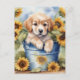 Watercolor Sunflower Puppy, this design features a cute and adorable Puppy in a Bucket with Sunflowers done in watercolor.
