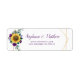 These address labels feature a watercolor floral design with sunflowers, purple roses, foliage and a faux gold geometric border. Use them on your wedding invitation envelopes. Personalise these labels by adding your own names and address. Matching wedding suite products are also available. Please visit our store.