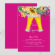 Sunflowers and lights engagement party invitation. Beer. Gold text. Invitation. Hot Pink.
