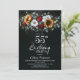 Sunflower Rose Floral Black 55th Birthday Party Invitation