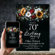 Sunflower Rose Floral Black 70th Birthday Party Invitation