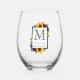 Sunflower Rose Floral Wedding Stemless Wine Glass
