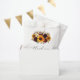 Sunflower floral Wedding Favour Bag featuring a rustic bouquet with watercolor painted sunflowers, red roses, purple flowers and greenery. This elegant favour bag is great for a boho themed wedding in the fall / autumn.