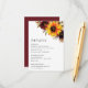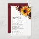 Sunflower floral Wedding Details Enclosure Card featuring a rustic bouquet with a watercolor painted sunflower, red rose, purple flower and greenery. This elegant Enclosure Card is great for a boho themed wedding in the fall / autumn.