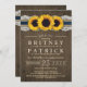 Sunflower Rustic Blue Engagement Party Invitations - features a barn wood background with sunflowers, lace, burlap and a printed navy blue ribbon. See the entire matching collection on this page.