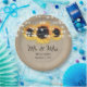 Personalised rustic burlap and sunflower wedding paper plates featuring sunflower flowers and string lights on a burlap background. Matching items available to complement these rustic floral wedding paper plates. Easily personalise to any occasion.