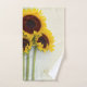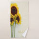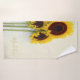 Sunflower Rustic towel set. A bright yellow sunflower is the backdrop for this custom birthday design.