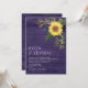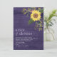 Simple, elegant, botanical, bohemian purple rustic wood wedding invitation with adorable unique giant sunflower and greenery.