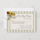 This sunflower RSVP card beautifully complements your wedding invitation suite with its romantic floral design and timeless, elegant layout. Featuring golden sunflowers, soft ivory blooms, and greenery against a warm cream background with a sage striped border, it’s perfect for rustic, garden, or outdoor weddings.