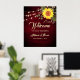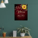 Welcome to a fall celebration with our elegant, boho-inspired wedding poster. Set against rustic barn wood and adorned with vibrant sunflowers, chic gold botanical lace, and string lights, this modern design features trendy calligraphy script. Perfect for adding a touch of charm and warmth to your autumn wedding.
