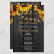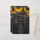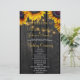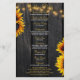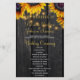 Elegant rustic budget wedding ceremony program template featuring beautiful bright yellow orange sunflowers bouquets and strings of twinkle lights on a country style dark brown wooden background. +++++++++++ + Personalise it with your your details.+++++++++++ Suitable for rustic country vintage chic summer garden | autumn fall outdoor weddings.