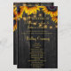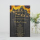 Elegant rustic budget wedding ceremony program template featuring beautiful bright yellow orange sunflowers bouquets and strings of twinkle lights on a country style dark brown wooden background. +++++++++++ + Personalise it with your your details.+++++++++++ Suitable for rustic country vintage chic summer garden | autumn fall outdoor weddings.