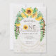 Sunflower Rustic Wood Lights First Birthday Invitation